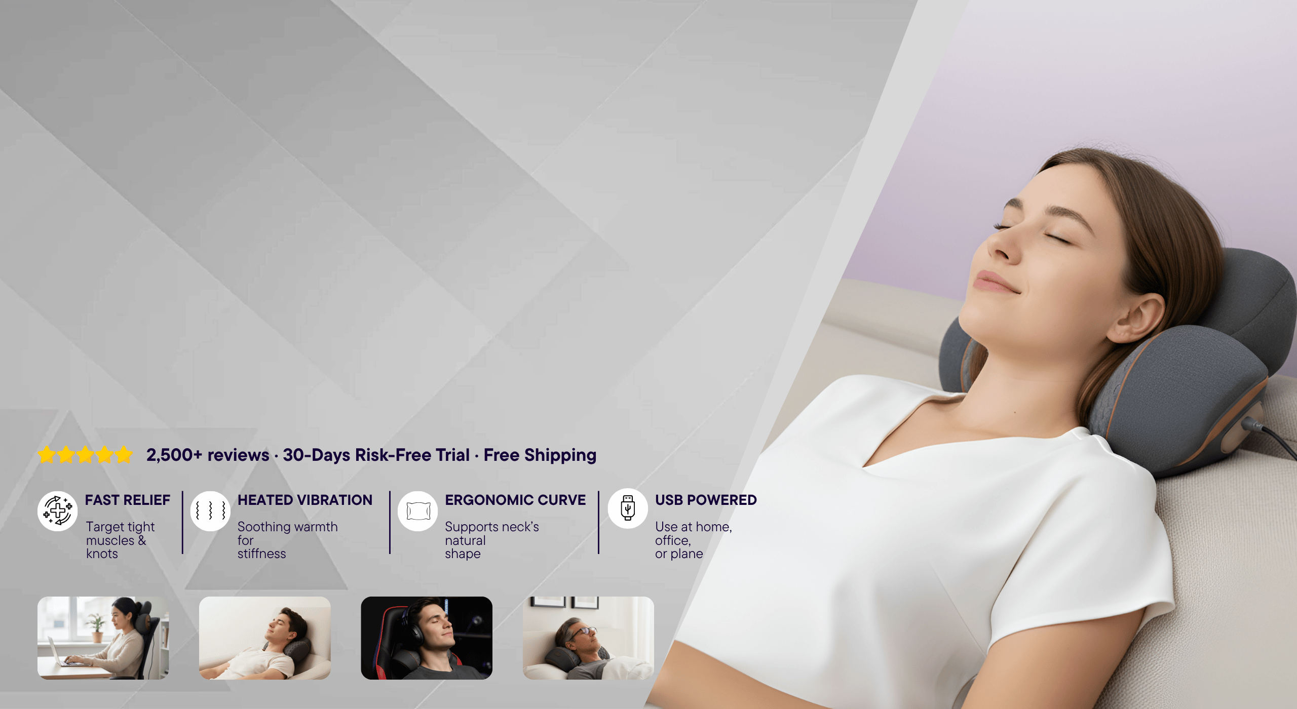 The device follows the natural curve of your body to provide support for your head, neck, and shoulders, help reduce neck and back pain, relax muscles, alleviate shoulder stiffness, and promote healthy and proper spine alignment.